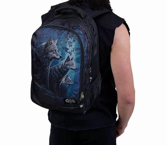 Design vlčí smečky v tmavém lesním prostředí symbolizuje ochranu, odhodlání a instinkt. Batoh Forest Guardian je perfektní volbou pro všechny, kteří milují divokou přírodu, gothic či fantasy motivy a zároveň hledají kvalitní batoh pro každodenní život.