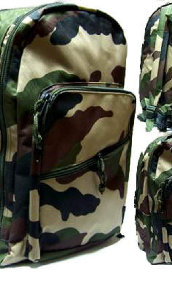 Batoh v barvách (khaki, hnědé a zelené skvrny), jsou vyrobeny z pevného plátna podšité speciálním gumovým materiálem, který je odolný proti dešti nebo mrazu. Je opatřen dvěmi polohovatelnými ramenními popruhy, vyztuženou zádovou části, čtyři úložné prostory. Celkové provedení batohu zajišťuje maximální pohodlnost používání - do školy, pro volný čas i sport. Rozměry šířka cca : 32 cm, výška: 43 cm, hloubka: 23 cm.