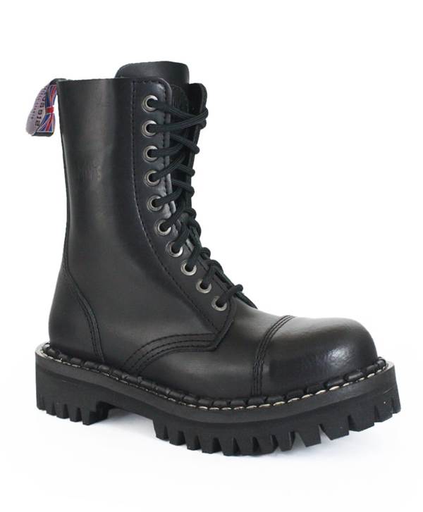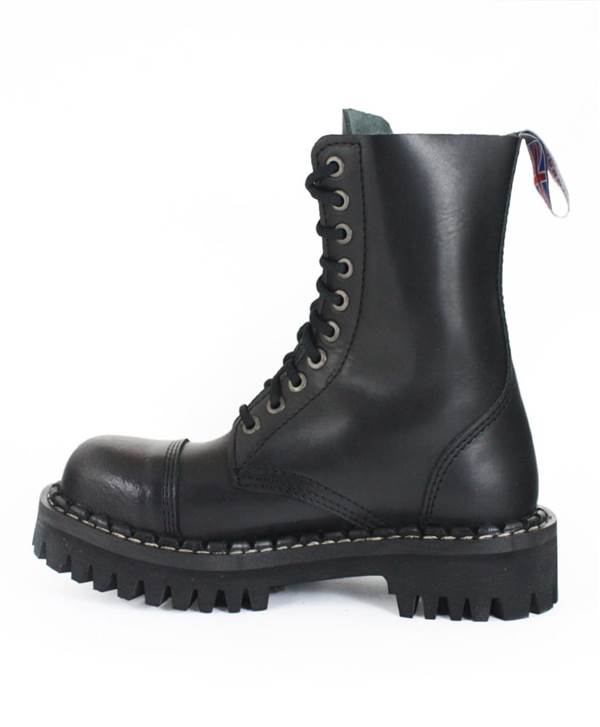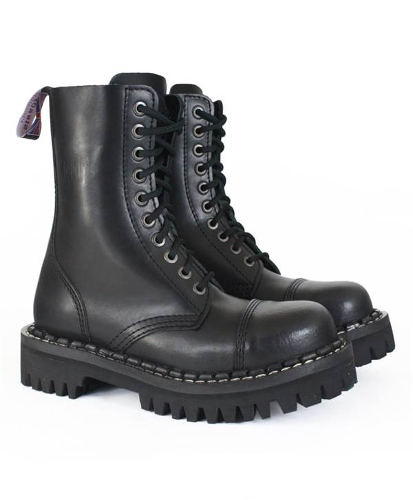 Desetidírkové šněrování zajišťuje pevné uchycení a klasický army/punk vzhled. Tyto boty jsou ideální pro koncerty, festivaly, každodenní nošení nebo do náročnějších podmínek, kde oceníš jejich robustní konstrukci a dlouhou životnost.