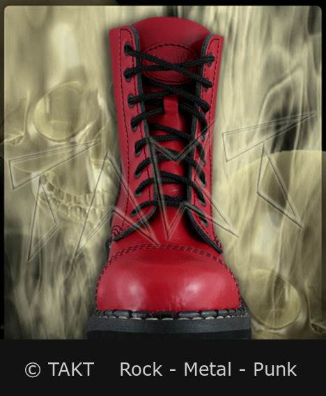 8 - smi dírkové boty jsou vyrobeny z kůže červené barvy s kovovou špičkou. Podrážka je prošívaná, lepená, zesílena šrouby. Boty lze objednat i ve větší velikosti, doba dodání je však na dotaz. Dostupné ve velikostech od 36 do 46.
