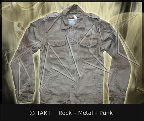 Lehká letní bunda vyrobena z pevného materiálu 100% bavlny. Barva olivová, stylizovaný opotřebovaný vzhled. Hlavní zapínání na zip krytý légou zapínanou na knoflíky, manžety rukávů zapínané na knoflíky a celkem 4 kapsy.