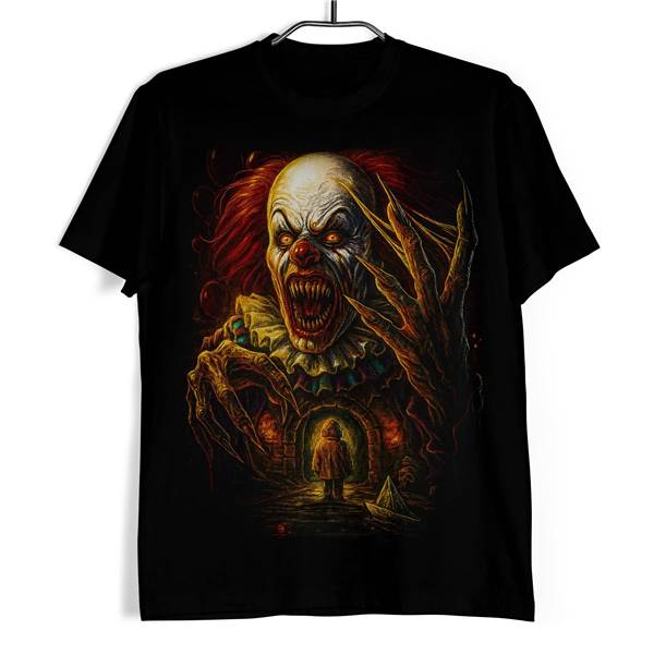 Hororové tričko Klaun zaujme výrazným a temně laděným motivem, který staví na děsivé tváři klauna, ostrých drápech a silné hororové atmosféře. Na černém podkladu skvěle vynikají kontrastní tóny, dramatické detaily i napínavý vizuál, který působí nepřehlédnutelně a okamžitě upoutá pozornost.
