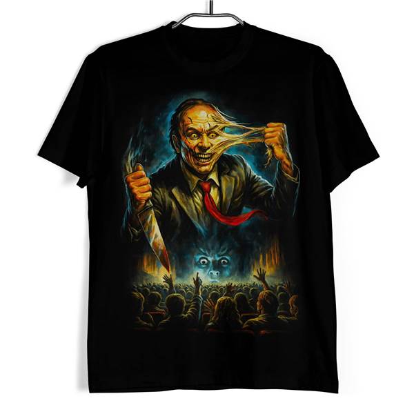 Design kombinuje hororovou postavu, temné světelné efekty a scénu s publikem, což vytváří silnou a neklidnou atmosféru. Tričko se hodí pro zákazníky, kteří mají rádi horor, temnou estetiku, filmové motivy a nápadné potisky s výrazným charakterem. Hororové tričko - Maniak s nožem snadno doplní černé džíny, mikinu i další alternativní oblečení.
