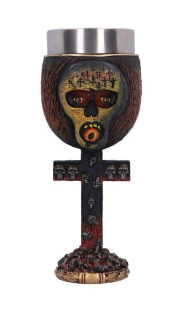 Licence - Import. Materiál: pryskyřice a nerezová ocel. Mimořádně pečlivě zpracovaný kalich s velkým množstvím ručně malovaného zdobení. Vnitřek poháru z nerezové oceli lze vyjmout. Objem přibližně 180 ml.