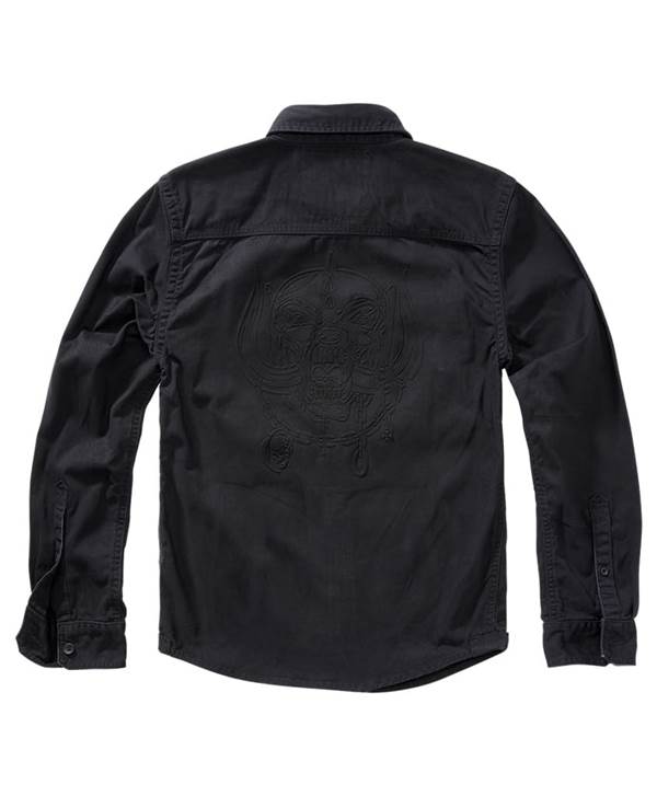 Licence Import. Materiál: kvalitní 100% bavlna. Barva: černá. Úžasná košile s nárameníky vyrobená z tlustého a na dotek příjemného materiálu. Zapínání na knoflíky. Košile je vpředu zdobena bílou výšivkou MOTORHEAD a vzadu brilantní 3D ražbou WARPIG a kovovým odznakem, který lze libovolně zapínat. Košile má mírně sepraný / obnošený vzhled (vintage styl).