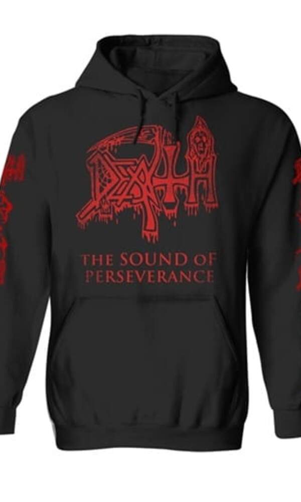Nadčasová mikina klokan Death – Sound Of Perseverance je povinností pro každého fanouška extrémního metalu. Černá mikina s kontrastní červenou podšívkou kapuce a výrazným logem Death na hrudi nabízí nejen nekompromisní vzhled, ale i pohodlí a kvalitu. Zadní stranu zdobí velký motiv inspirovaný ikonickým albem Sound Of Perseverance, který perfektně doplňuje celkový design s potiskem i na rukávech.