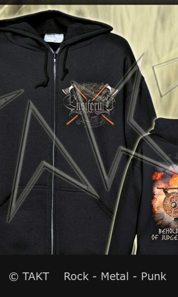 mikina Ensiferum Příklad rozměru vzorku velikost L: Celková délka (měřeno na zadní straně šitý šev na kapuci) cca 71 cm, šířka (měřeno od švu ke švu v podpaží), cca 58 cm, délka rukávu (měřeno od švu na rameni) cca 54 cm.