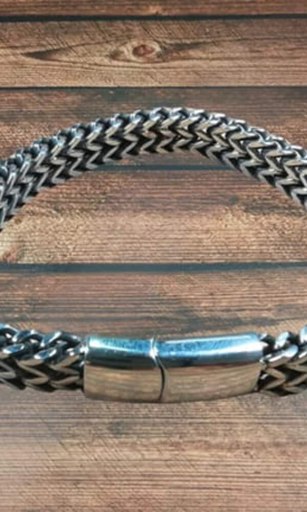 Tento elegantní náramek z nerezové oceli s řetízkem je vyroben z vysoce kvalitní nerezové oceli 304 a má praktické magnetické zapínání. Měří 22 cm na délku a 1,3 cm na šířku, takže perfektně padne. Je to stylový doplněk, který se hodí k obleku i kožené bundě, takže je univerzální.