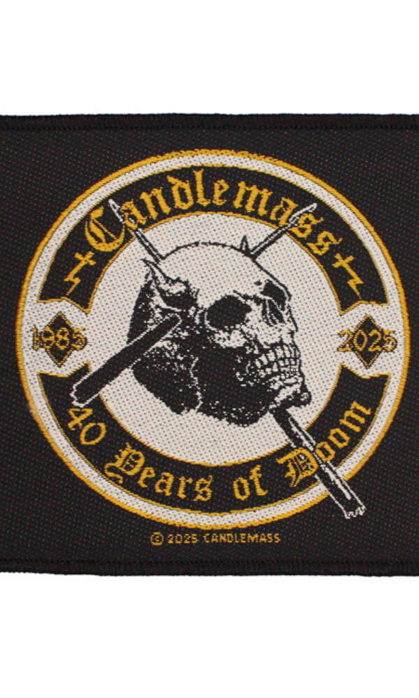 Nášivka CANDLEMASS - 40 Years of Doom připomíná čtyřicet let odkazu kapely CANDLEMASS a její nezaměnitelný rukopis. Jde o vyšívanou žakárovou nášivku s lemovanými okraji a barevnou výšivkou, takže působí výrazně a zároveň dobře drží svůj tvar. Rozměr cca 10 x 10 cm z ní dělá praktický formát, který se snadno hodí na různé typy oblečení i doplňků.