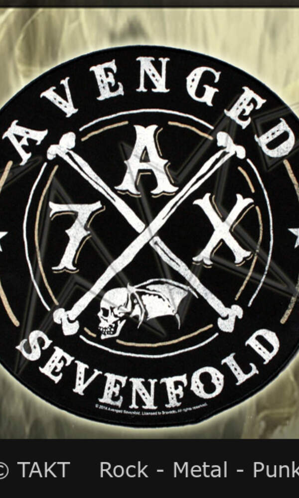 Velikost: výška 36 cm, horní šířka 29 cm a spodní 26 cm. Kvalitní potisk a obšití. Materiál: polyester. Ideální ozdoba pro jeansové bundy - velká nášivka Avenged Sevenfold. Licence