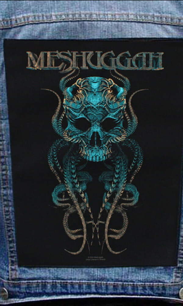Licence - Import. Velká nášivka na bundu Meshuggah. Okraje lemované. Snadno se přišívá nebo připíná. Technologie potisku: sítotisk.