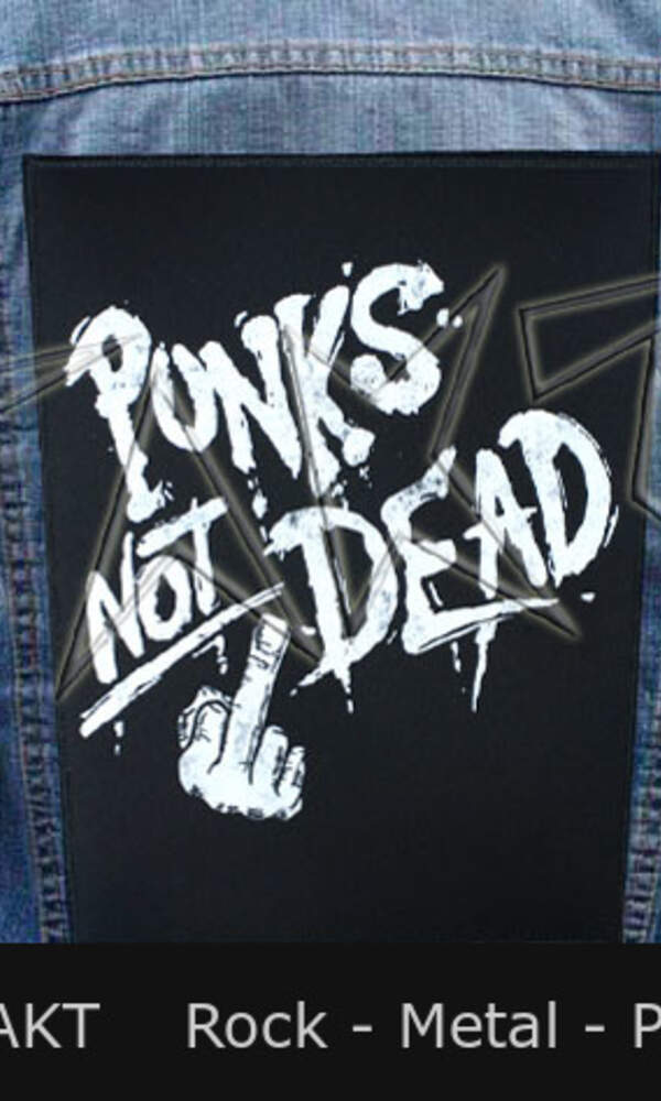 Velikost cca: výška 36 cm, horní šířka 29 cm a spodní 26 cm. Kvalitní potisk a obšití. Materiál: polyester. Velká nášivka Punks Not Dead . Velké nášivky jsou vhodné i jako příjemný dárek k narozeninám. Rozměry shodné s rozměry v USA. Licence