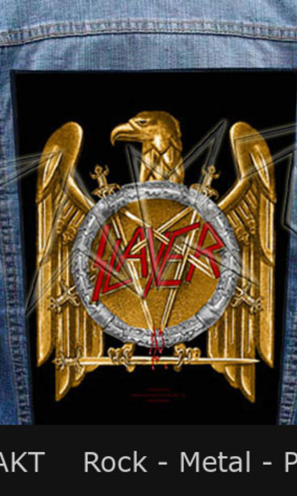 Nášivka na bundu Slayer je must-have doplňkem pro všechny fanoušky thrash metalové legendy Slayer. Tento výrazný motiv se zlatým orlem a ikonickým logem kapely symbolizuje syrovou energii a nekompromisní styl, kterým si kapela od 80. let získala miliony fanoušků po celém světě. Design nášivky okamžitě přitáhne pozornost a dodá vaší bundě temný metalový nádech.