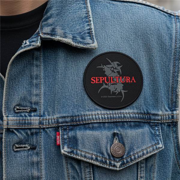 Nášivka Sepultura – Logo Tribal má průměr přibližně 9 cm, je vyrobena z odolného polyesteru, precizně vyšitá a s lemovanými okraji proti třepení. Skvěle se hodí k našití na bundy, vesty nebo batohy a vydrží i náročné nošení.