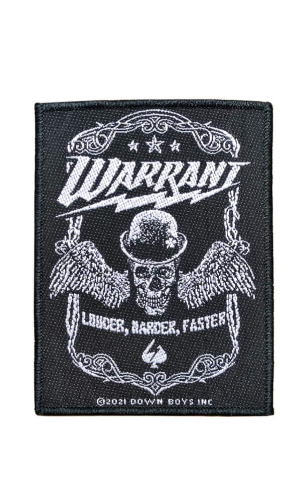 Licence - Import. Velká nášivka na bundu. Okraje lemované. Snadno se přišívá nebo připíná. Technologie potisku: sítotisk. Rozměry: výška cca 36 cm; šířka cca 29 - 26 cm. Velká nášivka na bundu Warrant - Louder, Harder, Faster je perfektní doplněk pro fanoušky americké hardrockové kapely Warrant. Design této nášivky zdobí ikonická lebka s kloboukem a křídly, doplněná nápisem Louder, Harder, Faster, což je zároveň název alba kapely z roku 2017. Elegantní černobílý motiv zaujme svým klasickým, ale