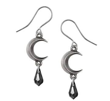 Excelentní pár ručně vyrobených cínových náušnic ve tvaru půlměsíce s jemným rakouským křišťálem černé barvy.