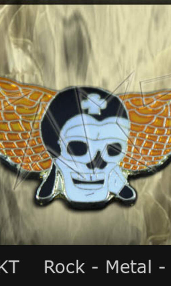 Licence Import - Kovový odznak Devil Horns . Upevnění se provádí propíchnutím materiálu a nasazením zabezpečení. Rozměry: cca2, 7 x 4, 6 cm