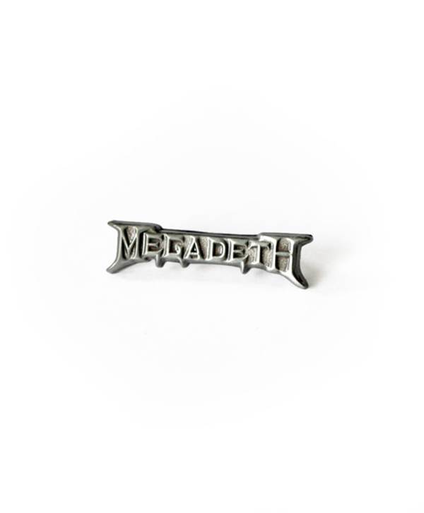 Licence - Kovový odznak Megadeth. Uchycení se provádí propíchnutím materiálu a nasazením bezpečností zarážky.