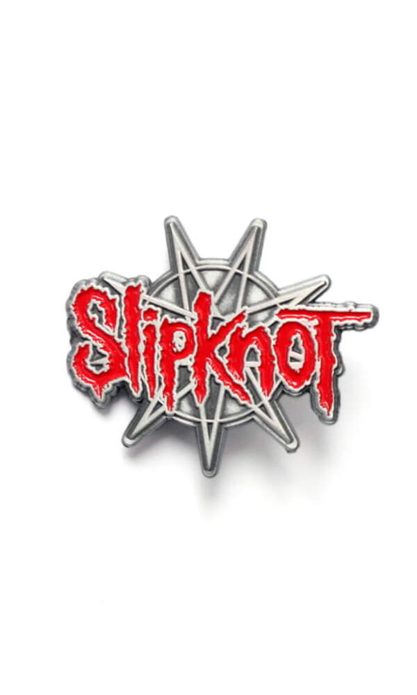 Licence Import - Kovový odznak Slipknot . Zdobené červeným lakem. Upevnění se provádí propíchnutím materiálu a nasazením zabezpečení. Rozměry: cca 1 x 4 cm