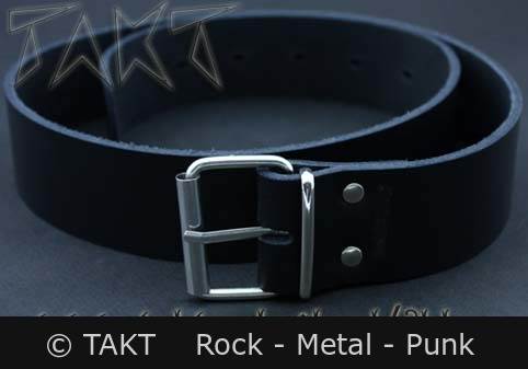 valitní kožený pásek z hrubé černé kůže s klasickou kovovou přezkou, zdobení - lesklé kovové kužely široké 0, 9 cm a kolečko, které jsou vsazeny ve dvou řadách pod sebou. Šířka pásku je 4 cm. Každý fanda či fanynka jistě ocení tento kožený opasek, jeho . . .