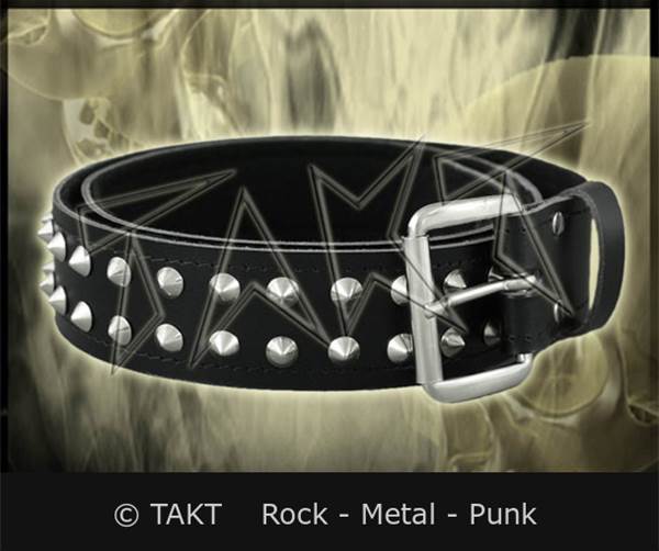 Kvalitní kožený pásek, zdobený kovovými kužely o průměru cca 1 cm, které jsou vsazeny ve třech rozestavěných řadách. Kožený pásek je v černé barvě s klasickou kovovou přezkou. Šířka opasku je cca 4 cm. Každý fanda či fanynka jistě ocení tento kožený . . .