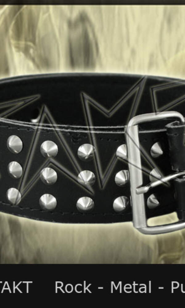 Kvalitní kožený pásek z hrubé černé kůže s klasickou kovovou přezkou, zdobení - lesklé kovové kužely vysoké cca 1, 5 cm, které jsou hustě vsazeny ve dvou řadách pod sebou. Šířka pásku je cca 3 cm. Každý fanda či fanynka jistě ocení tento kožený opasek, . . .