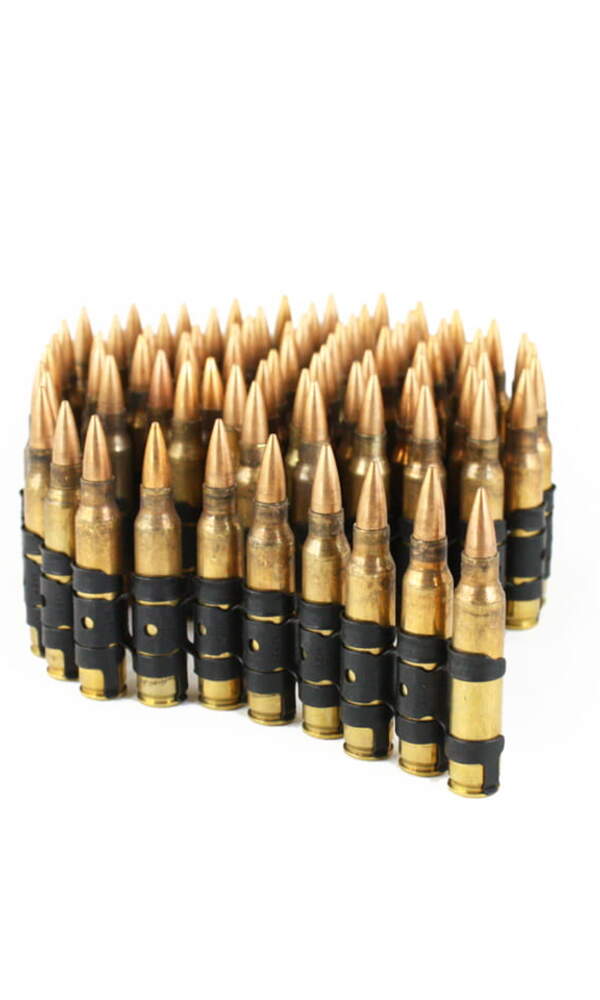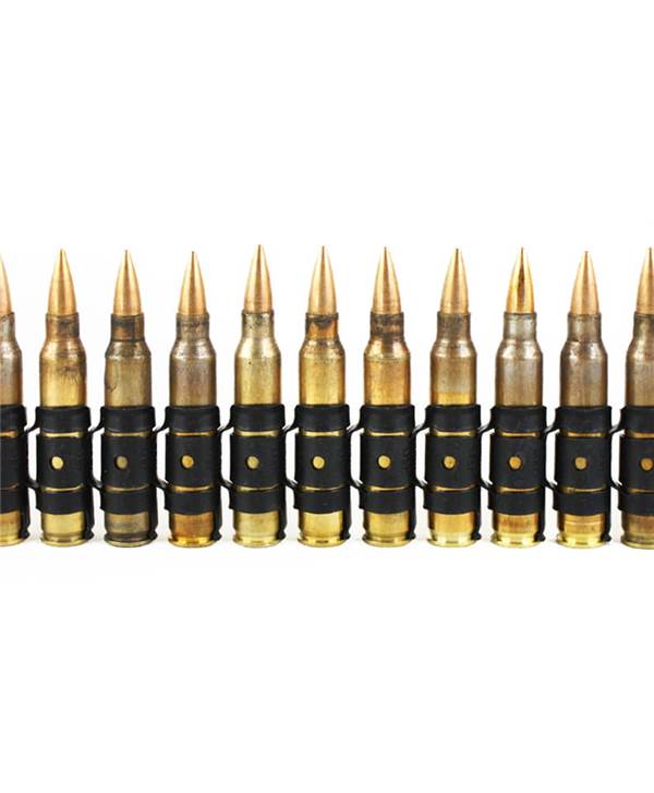 Nezvyklý opasek skládající se z původních vojenských dutých nábojů cca z 65 kusů munice (duté / prázdné), materiál nikl - kov. Barva: měděná.