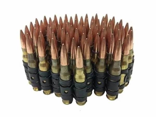 Nezvyklý opasek skládající se z původních vojenských dutých nábojů cca z cca 65 kusů munice (duté / prázdné), materiál nikl - kov. Barva: měděná.