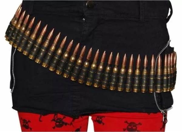 Rozměry opasku: max. délka cca 98 cm. Délka lze zkrátit tím, že se odstraní jednotlivé kusy imitace nábojů.