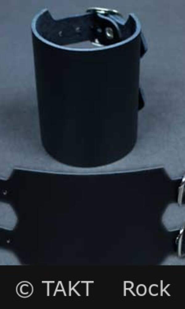 Barva: černá. Opasek na ruku má klasické zapínání na kovovou přezku. Jeho rozměry jsou cca: šířka 6 cm, regulovatelná délka zapnutí na zápěstí je 25 až 16 cm