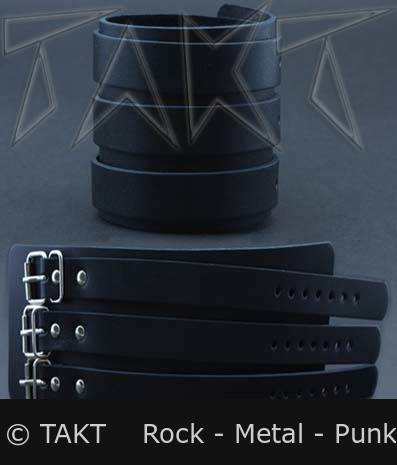 Barva: černá. Opasek na ruku má klasické zapínání na kovovou přezku. Jeho rozměry jsou cca : šířka 8 cm, regulovatelná délka zapnutí na zápěstí je 25 až 16 cm