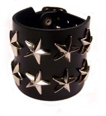 Barva: černá. Opasek na ruku má klasické zapínání na kovovou přezku. Jeho rozměry jsou cca : šířka 6 cm, regulovatelná délka zapnutí na zápěstí je 24 až 17 cm, průměr hvězdy je 2,2 cm.