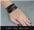 Barva: černá. Opasek na ruku má klasické zapínání na kovovou přezku. Jeho rozměry jsou cca: šířka 8 cm, regulovatelná délka zapnutí na zápěstí je 25 až 16 cm