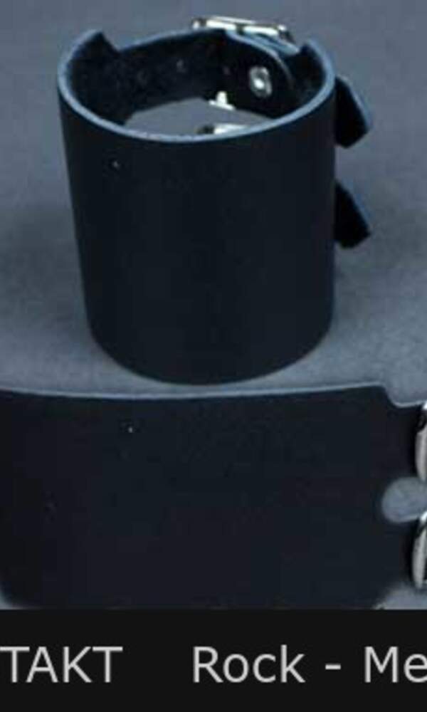 Kožený opasek na ruku . Barva: černá, se zapínáním na dvě spony taktéž z kovu. Jeho rozměry jsou cca : šířka 6 cm, regulovatelná délka zapnutí na zápěstí cca 17 cm - 24 cm.