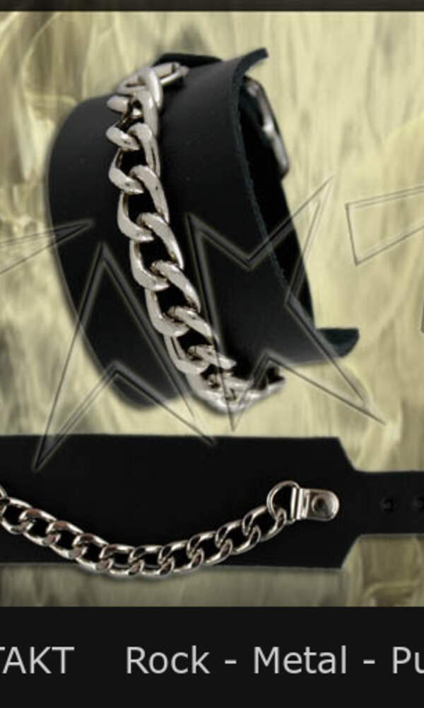 Kožený opasek na ruku . Barva: černá, zdobený je jedním řetízkem z kovu se zapínáním na sponu taktéž z kovu. Jeho rozměry jsou cca : šířka 4 cm, regulovatelná délka zapnutí na zápěstí cca 16 cm - 21 cm.