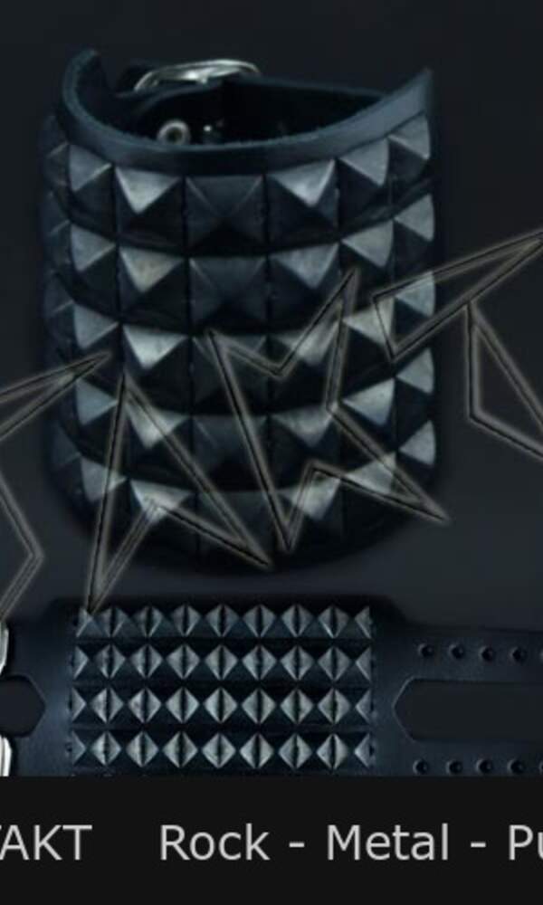 Barva: černá, kovové středně velké kužely o průměru 10mm. Opasek na ruku má klasické zapínání na kovovou přezku. Jeho rozměry jsou cca: šířka 8 cm, regulovatelná délka zapnutí na zápěstí je 23 až 17 cm