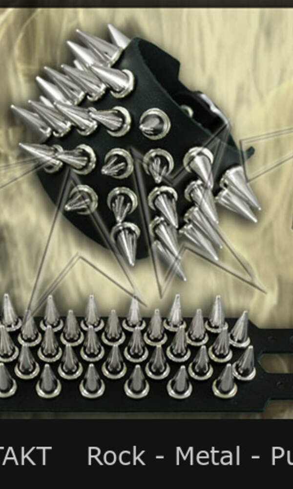 Barva: černá, kovové středně velké kůželové trny o průměru 11mm a délky 15mm. Opasek na ruku má klasické zapínání na kovovou přezku. Jeho rozměry jsou cca: šířka 8 cm, regulovatelná délka zapnutí na zápěstí je 25 až 17, 5 cm
