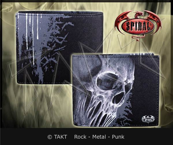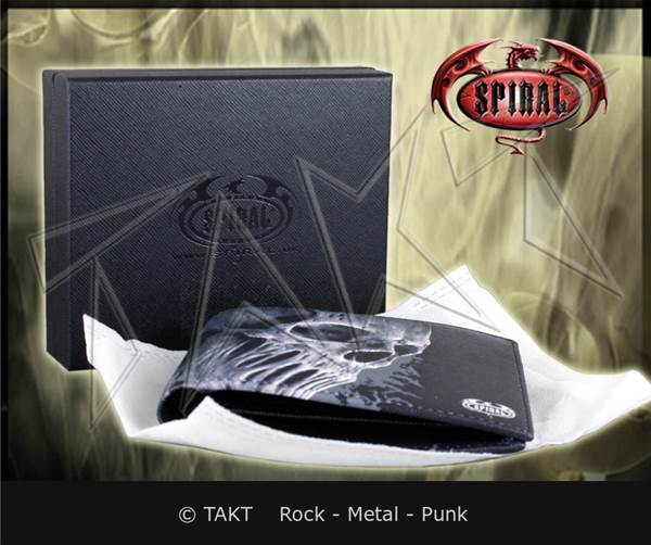 Vyrobena z kůže, obšitá černou nití zdobená cvoky a ornamentem ve tvaru rytířského kříže s lebkou. Zapínání je na dva kovové cvoky, uvnitř je prostor pro osobní dokumenty, prostor na papírové bankovky a kapsa na zip na kovové mince. Peněženku doplňuje . . .