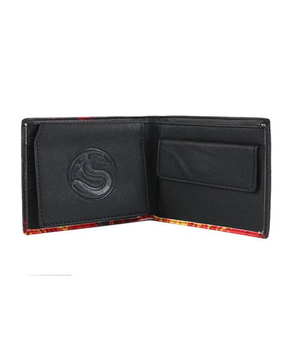 Vyrobeno z ekologické kůže, zdobené černými nitěmi. Peněženka je na obou stranách zdobena potiskem s reliéfem a potiskem ALL PRINT na vnitřní straně. Má četné přihrádky na dokumenty a bankovky. Připojený kovový řetěz má karabinu a kožený řemínek, který . . .
