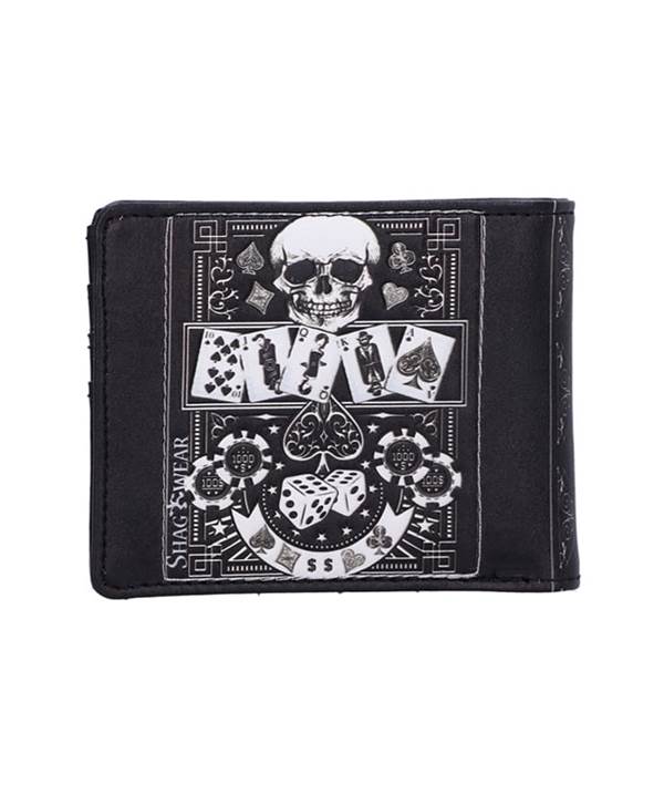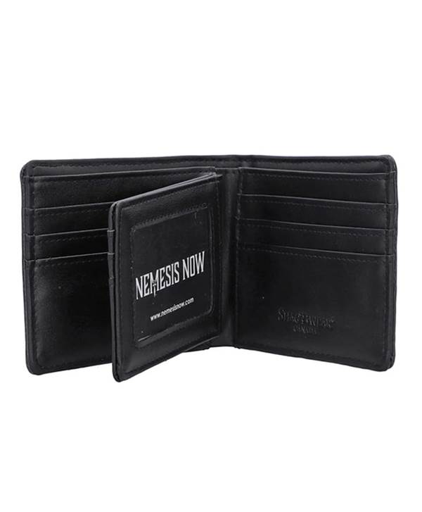 Vyrobena z kůže, obšitá černou nití zdobená cvoky a ornamentem ve tvaru rytířského kříže s lebkou. Zapínání je na dva kovové cvoky, uvnitř je prostor pro osobní dokumenty, prostor na papírové bankovky a kapsa na zip na kovové mince. Peněženku doplňuje . . .