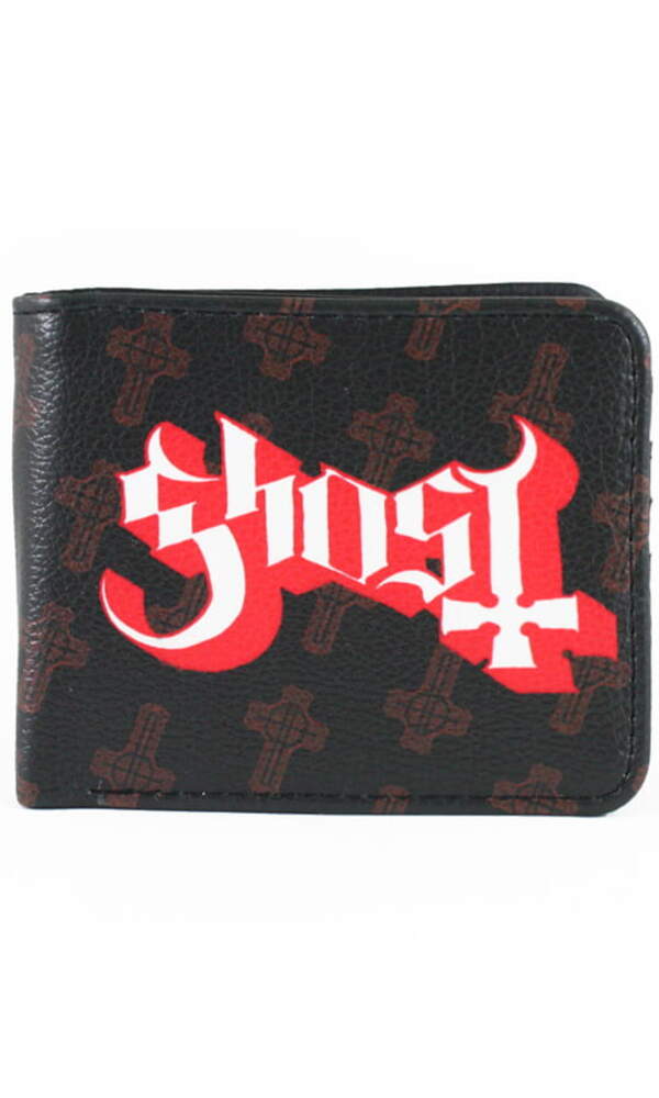 Peněženka z ekologické kůže, lemovaná černými nitěmi. Verze Premium - materiál imitující vzhled přírodní kůže. Potisk na přední a zadní straně peněženky. Uvnitř má přihrádky na doklady a platební karty. Ideální pro každého fanouška GHOST