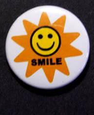 Plastová o průměru cca 2,5 cm. Připínání je na sponku, která je v zadní části. Licence