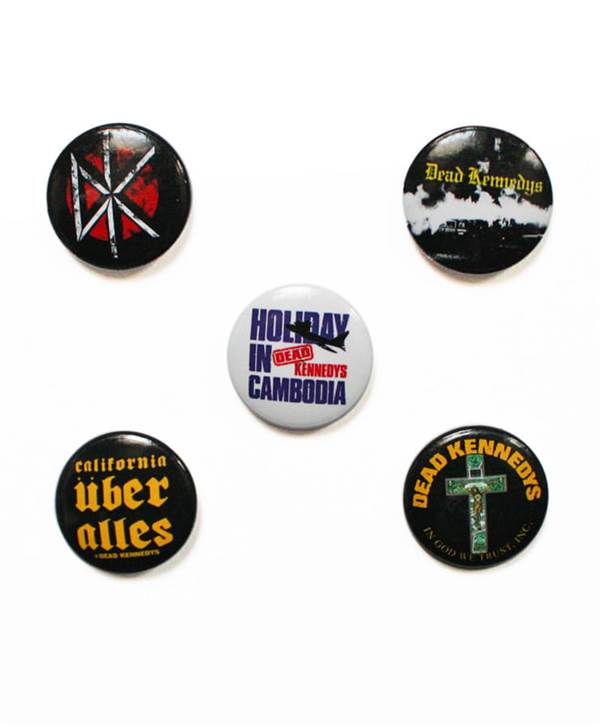Licence Import - Sada 5 malých ozdobných placek o průměru cca 2,5 cm. Placky mají zapínání s plastovou vložkou.