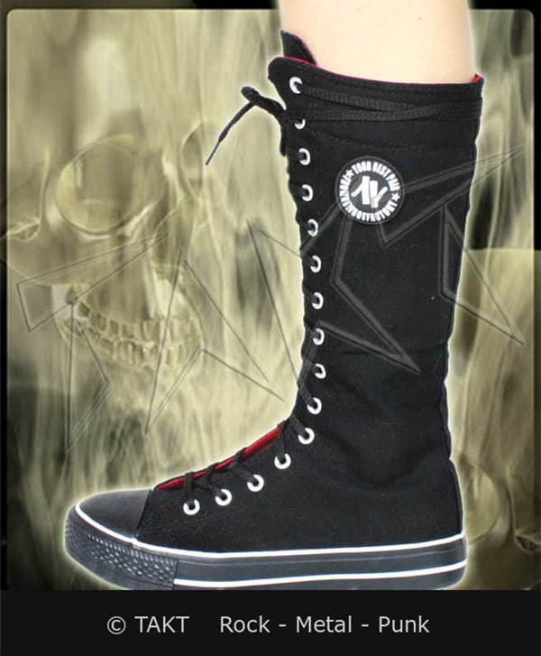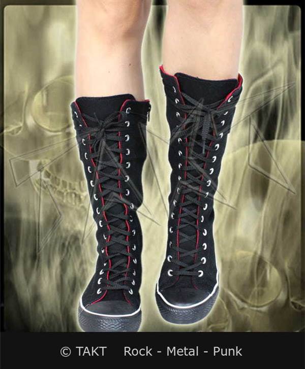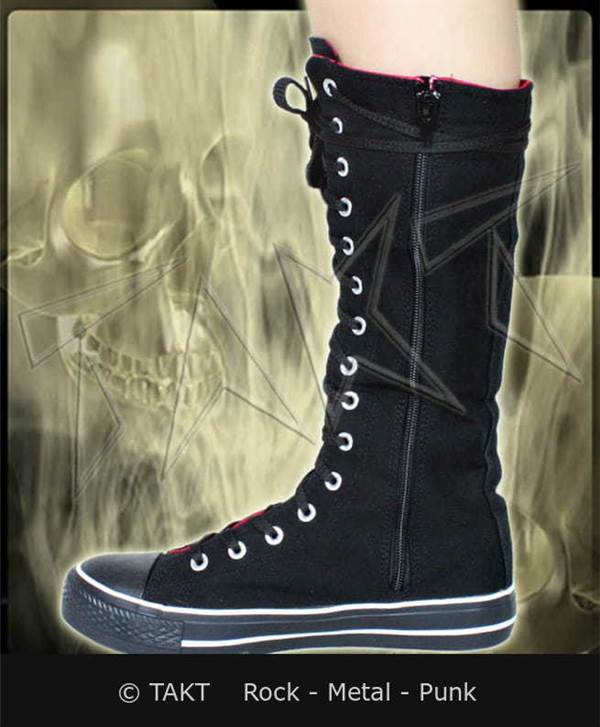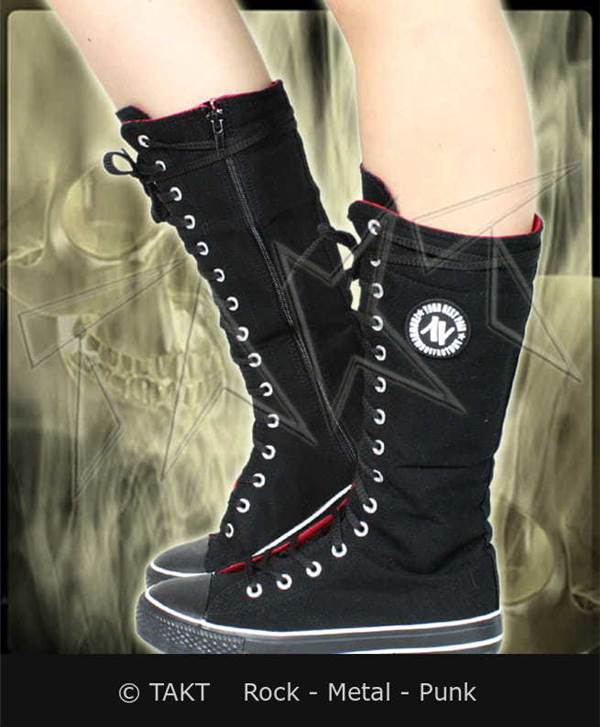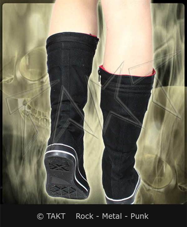 Super efektivní vysoké tenisky vyrobené ze silného černého plátna, vázané černými tkaničkami. Podešev z černé gumy s bílým lemem. Na vnitřní straně tenisky je zip (po celé délce), který umožňuje rychlé a pohodlné nasazení a sundání tenisek. Červený střed tenisek.