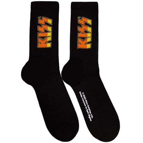 Ponožky Kiss - Classic Logo jsou dokonalým doplňkem pro každého fanouška ikonické kapely KISS. Tyto stylové ponožky s klasickým logem kapely v oranžovo-žluté barvě na černém podkladu přinášejí nadčasový design, který odkazuje na legendární éru rockové hudby.