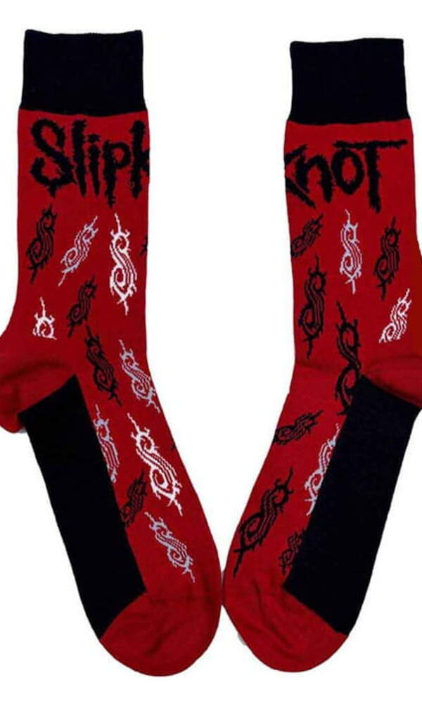 Ponožky Slipknot - Tribal S - červené jsou výrazný doplněk pro fanoušky moderního metalu a oficiálního band merchandisu. Kombinace červeného podkladu, černých detailů a ikonického „tribal S“ motivu vytváří typický vizuální styl, který je s kapelou Slipknot dlouhodobě spojený.