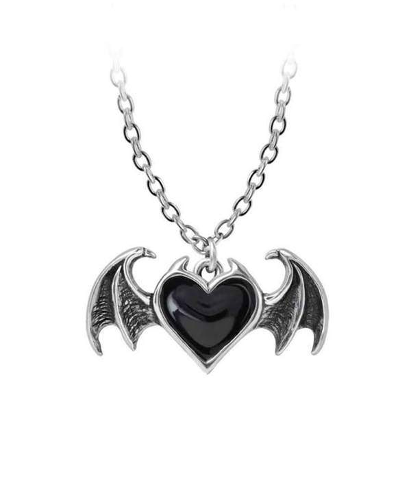 Z kolekce Alchemy England. Kovový odlitek ve tvaru srdce s rohy a křídly. Zavěšeno na stříbrném řetízku se zapínáním na karabinku.