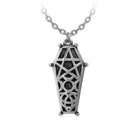 Tento přívěšek Alchemy Hex Coffin je perfektním doplňkem pro každodenní nošení nebo speciální příležitosti. Skvěle doplní gotický nebo alternativní outfit a bude poutavým šperkem pro každého, kdo obdivuje temnější stránky módy a spirituality. Vyjádřete svou osobnost a jedinečný styl s tímto výrazným gotickým