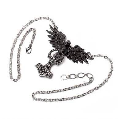 Přívěšek Alchemy Hrafnhammer je vyroben z odolného cínu, což zajišťuje jeho dlouhou životnost a výrazný vzhled. Je ideálním doplňkem pro fanoušky severské mytologie, fantasy a historických symbolů. Kombinace havrana a Mjölniru v tomto přívěsku vyjadřuje nejen odvahu a sílu, ale také ochranu a vedení na duchovní cestě.