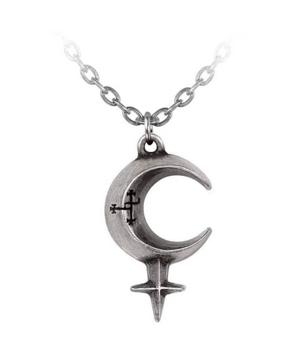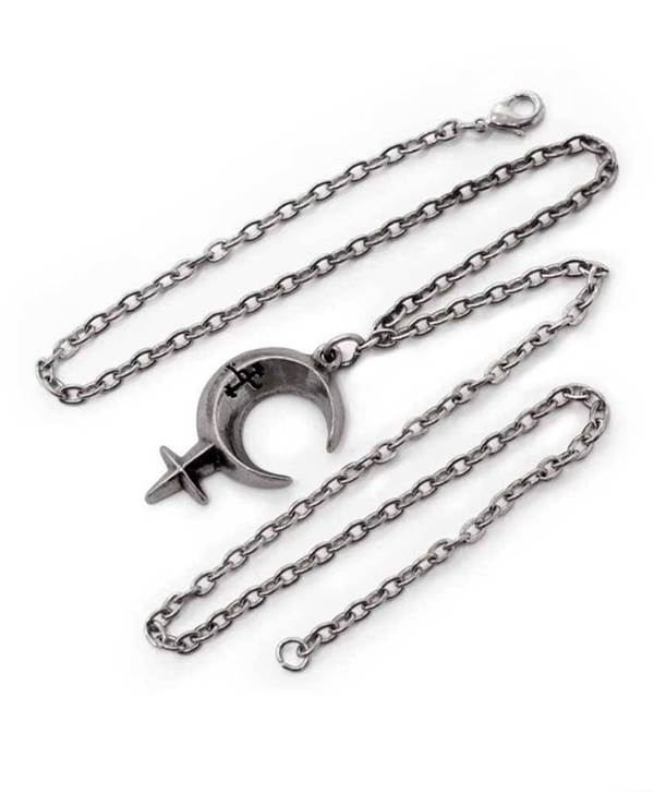 Licence Alchemy England - Import. Kovový odlitek ve tvaru symbolu půlměsíce Lilith. Zavěšeno na řetízku stříbrné barvy.